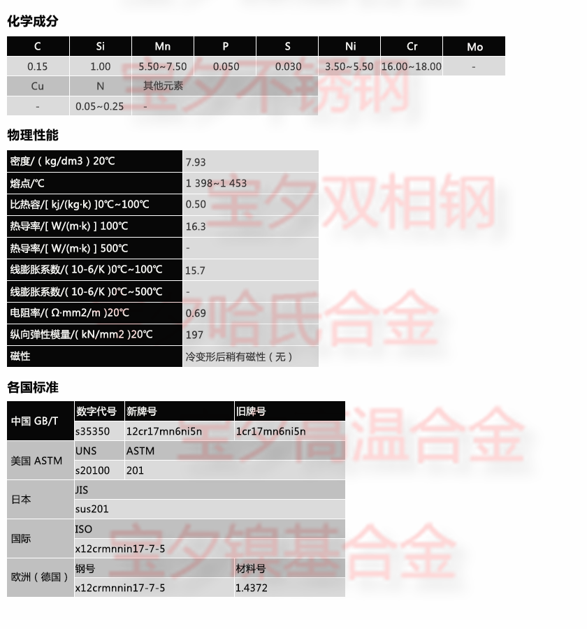 宝钢12Cr17Mn6Ni5N,太钢12Cr17Mn6Ni5N,新日铁12Cr17Mn6Ni5N,日本冶金12Cr17Mn6Ni5N,蒂森克虏伯12Cr17Mn6Ni5N,奥托昆普12Cr17Mn6Ni5N,日本神户12Cr17Mn6Ni5N