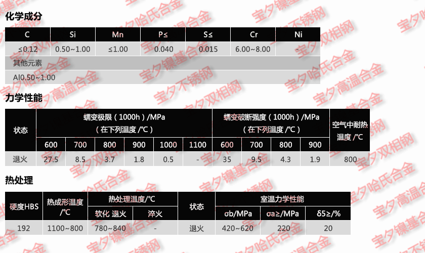 宝钢1.4713,太钢1.4713,新日铁1.4713,日本冶金1.4713,蒂森克虏伯1.4713,奥托昆普1.4713,日本神户1.4713