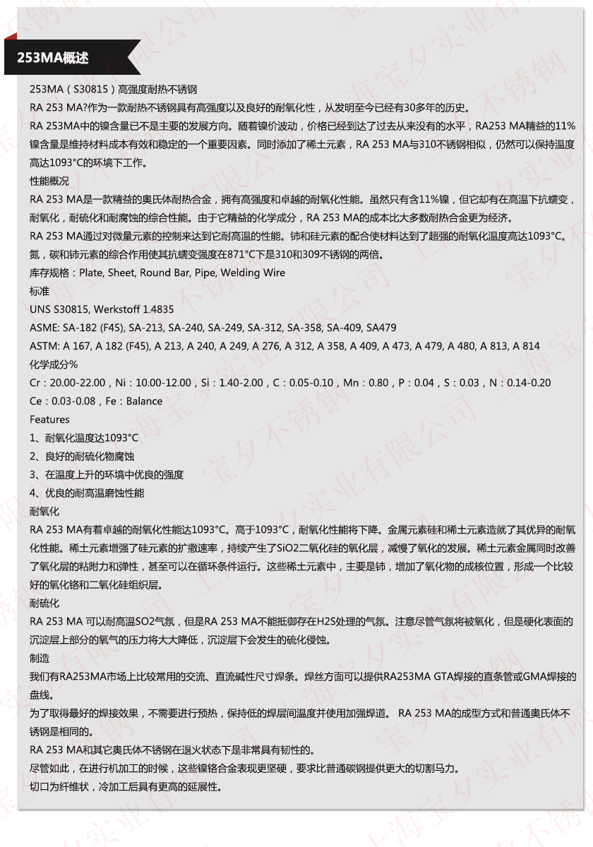 上海宝夕实业—253MA材质单,上海宝夕实业—253MA成分表,上海宝夕实业—253MA是什么材料