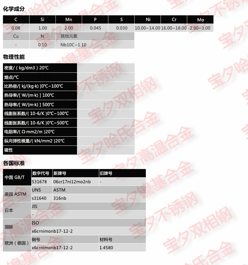 上海宝夕实业—S31678材质单,上海宝夕实业—S31678成分表,上海宝夕实业—S31678是什么材料