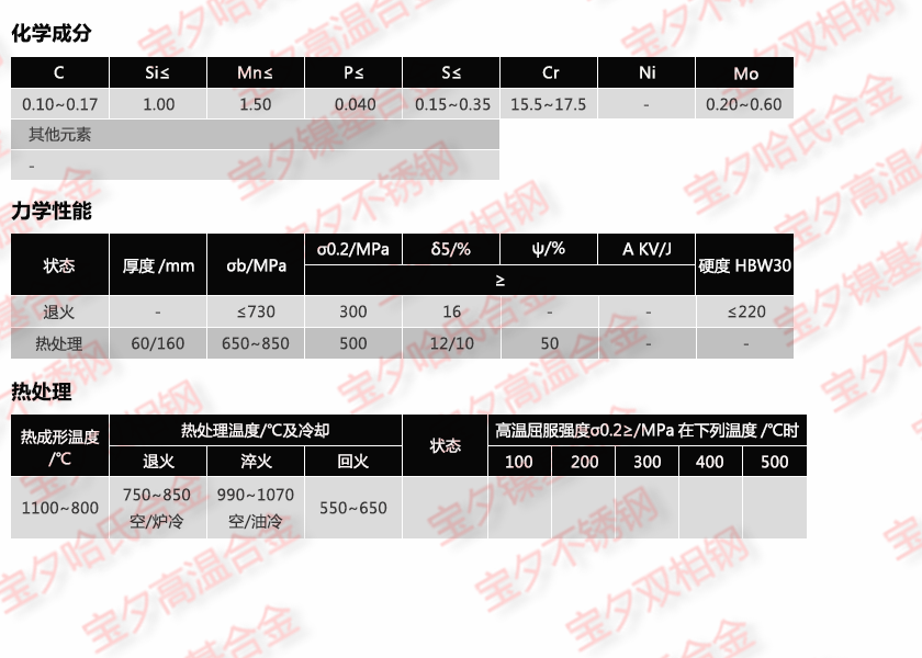 宝钢1.4104,太钢1.4104,新日铁1.4104,日本冶金1.4104,蒂森克虏伯1.4104,奥托昆普1.4104,日本神户1.4104