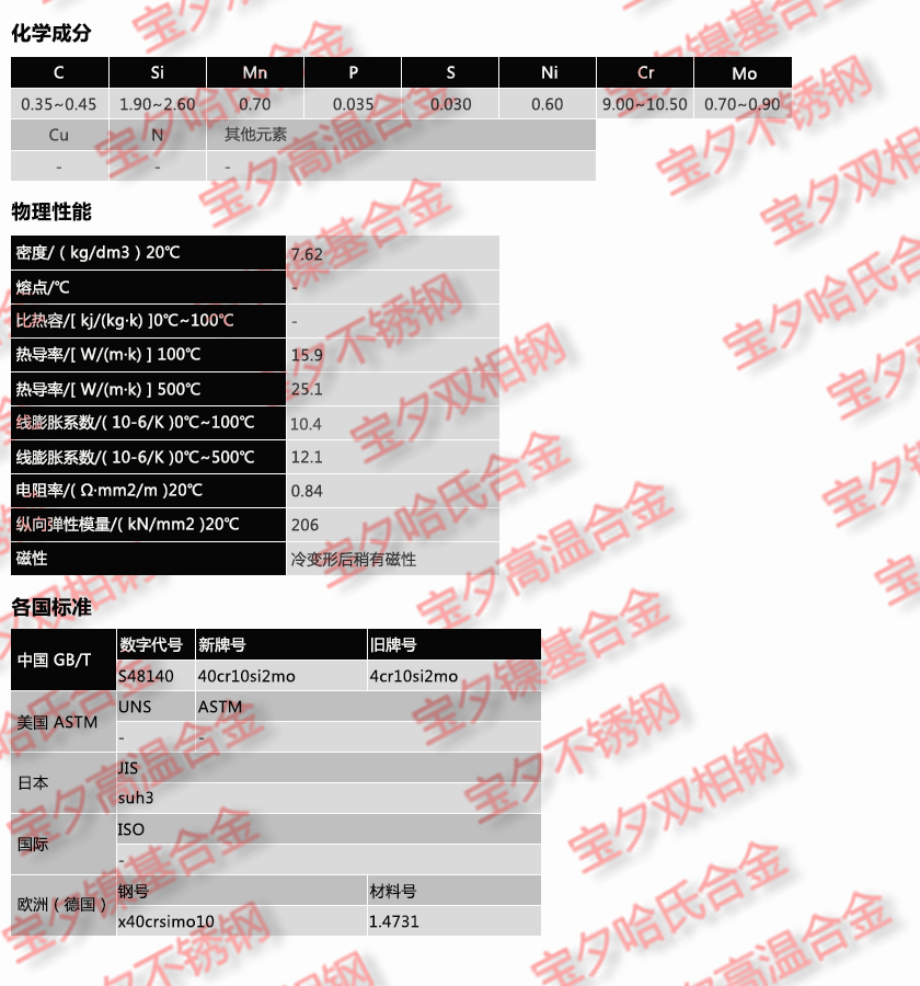 宝钢4Cr10Si2Mo,太钢4Cr10Si2Mo,新日铁4Cr10Si2Mo,日本冶金4Cr10Si2Mo,蒂森克虏伯4Cr10Si2Mo,奥托昆普4Cr10Si2Mo,日本神户4Cr10Si2Mo