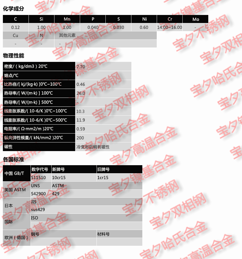 宝钢10Cr15,太钢10Cr15,新日铁10Cr15,日本冶金10Cr15,蒂森克虏伯10Cr15,奥托昆普10Cr15,日本神户10Cr15
