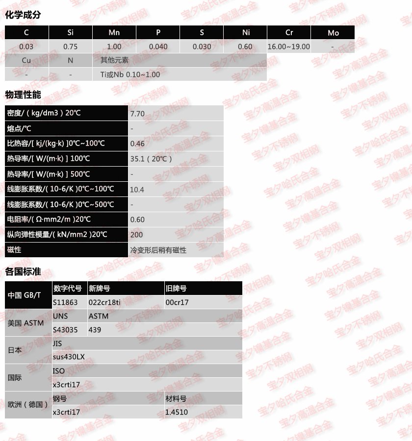 上海宝夕实业—022Cr18Ti材质单,上海宝夕实业—022Cr18Ti成分表,上海宝夕实业—022Cr18Ti是什么材料