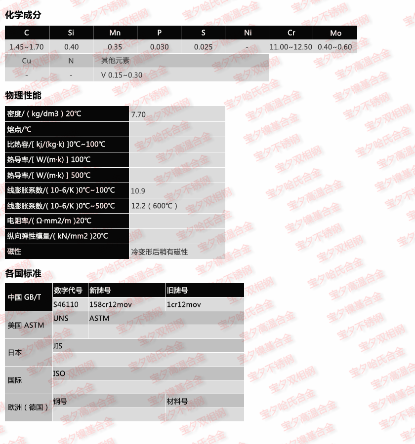 上海宝夕实业—158Cr12MoV材质单,上海宝夕实业—158Cr12MoV成分表,上海宝夕实业—158Cr12MoV是什么材料